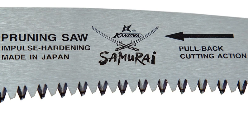 تیغه سامورایی اصلی ساخت کشور ژاپن میباشد و جزو بهترین اره باغبانی محسوب میشود. تیغه فولادی این اره به صورت دو طرفه طراحی شده و باعث می شود هم درحرکت رفت و هم در حرکت برگشت دست برش انجام شود. این اره به دلیل کارآمدی بالا در برش انواع چوب ها و درختان جایگزین خوبی برای اره های بنزینی و برقی است.