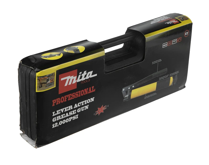 گیریس پمپ دستی میتا با قدرت ۱۲۰۰۰ psi و حجم ۶۰۰ میلی لیتر ( سی سی )، دارای سه عدد گیریس خور ۴۵ درجه - ۹۰ درجه - راست ( ۰درجه )می باشد. جنس بدنه از فولاد آلیاژی مقاوم با پوشش ضدزنگ و مقاوم در برابر سایش ساخته شده است. مکانیزم دو سوپاپ برای افزایش راندمان روانکاری به کار برده شده است و پیستون برای حداقل نشت و افزایش طول عمر، از فولاد سختکاریشده