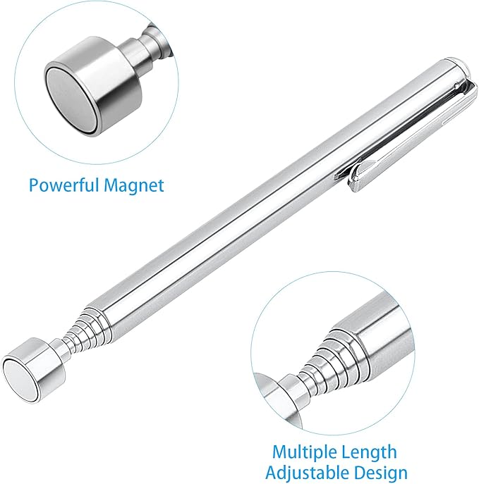 آهنربای تلسکوپی ابزاری کاربردی برای برداشتن و جمعآوری قطعات فلزی ریز در فضاهای محدود و دور از دسترس است. این ابزار با بدنهی تلسکوپی قابل تنظیم، امکان دسترسی به داخل شیارها، زیر دستگاهها و نقاطی را فراهم میکند که دست یا ابزار معمولی به آنها نمیرسد.